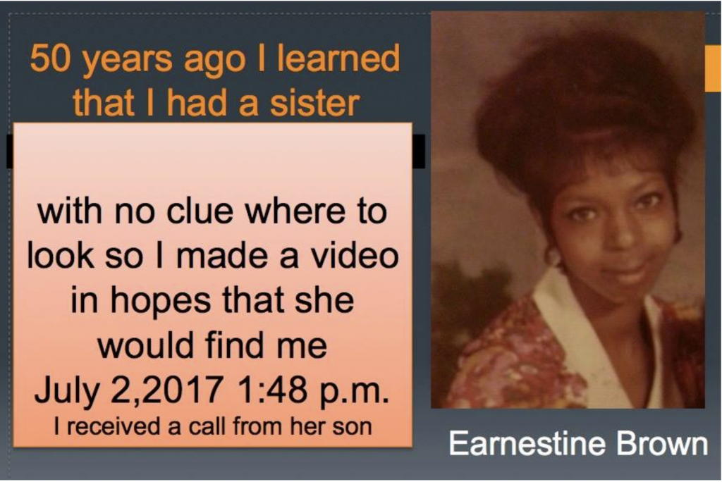 when i was 9 years old i learned that there was another sister before mom and dad were married and lost track of her location untill 25 years later my father passed and my brother Zay and I began to search to find her it took 30 years and one day i receive a phone call… this is the video she found .(Hallelujah)